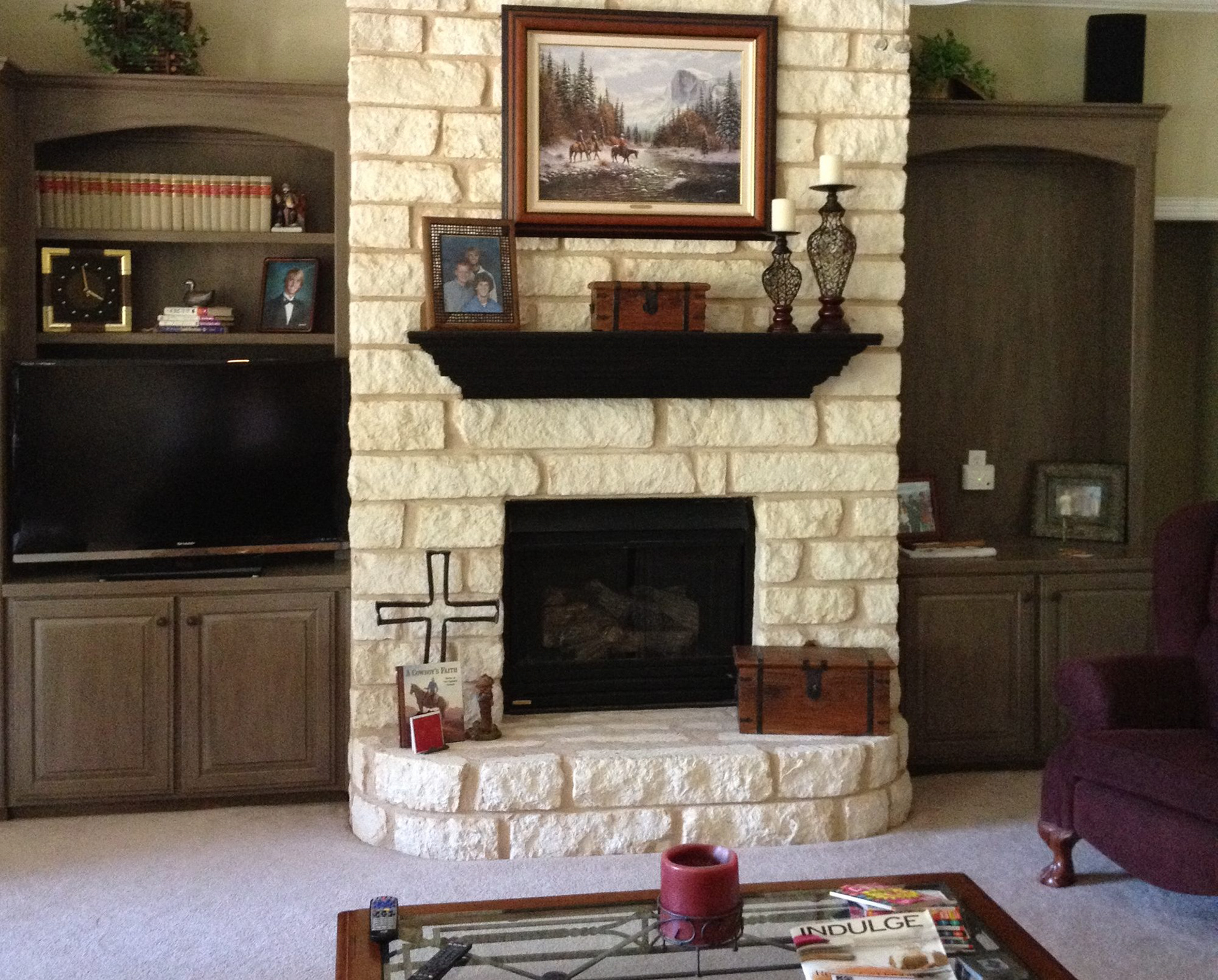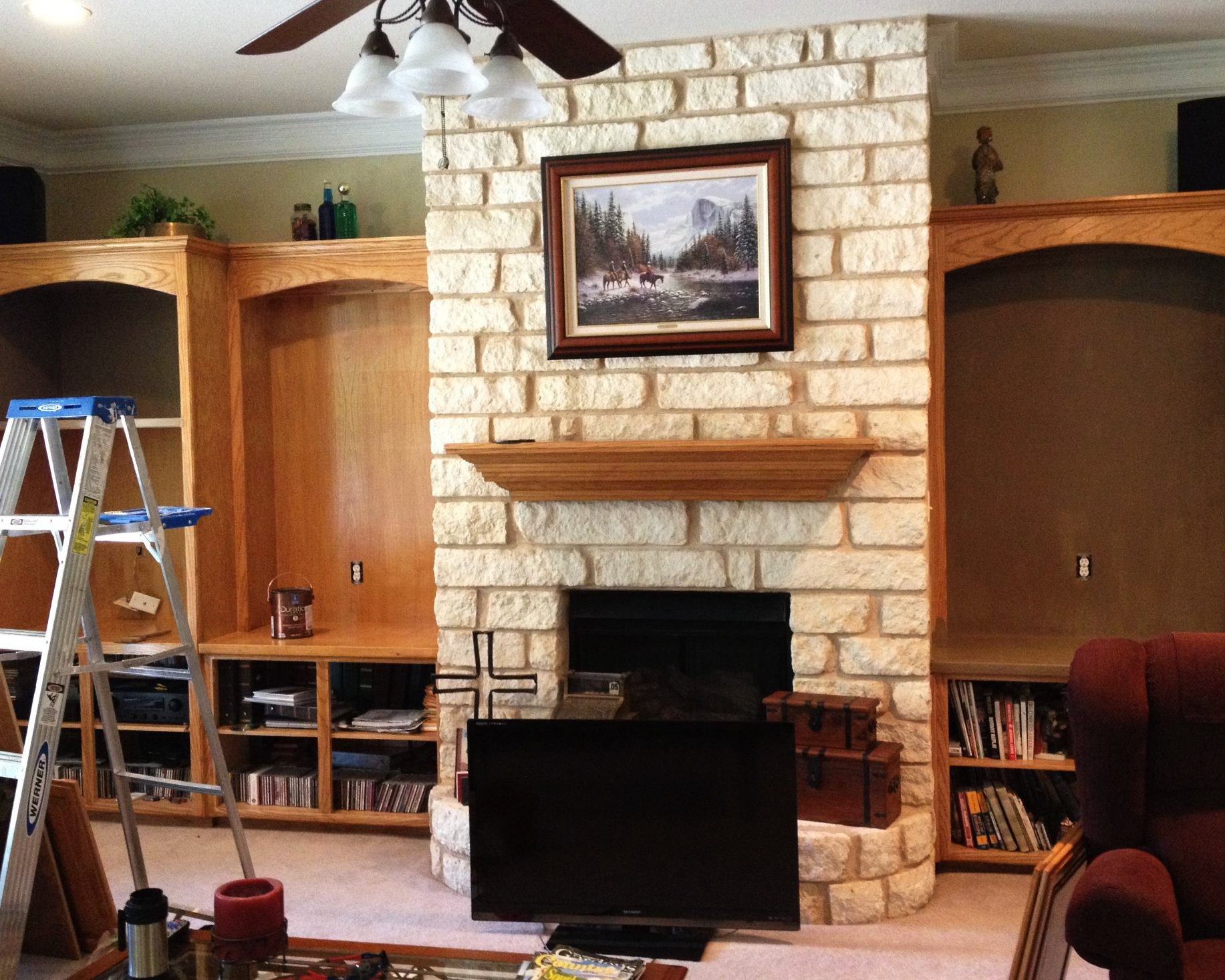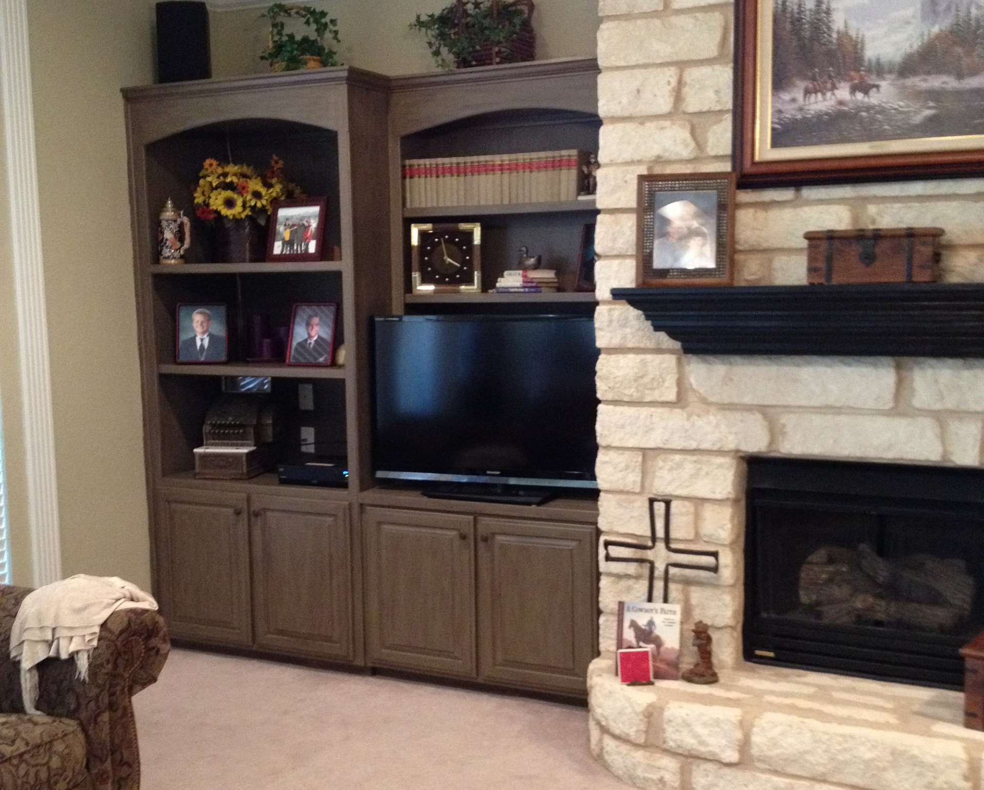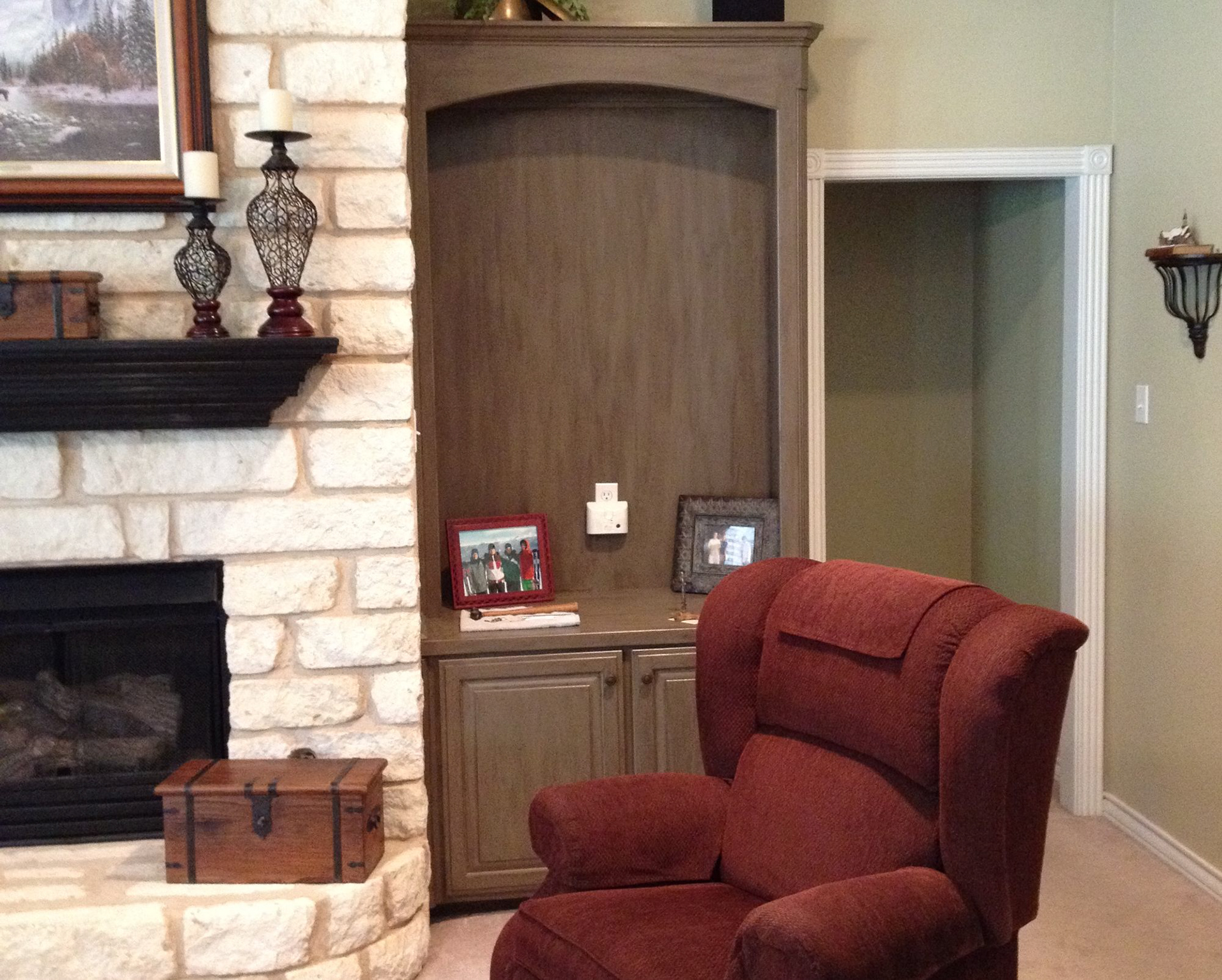 Cabinets and Fireplace Mantle